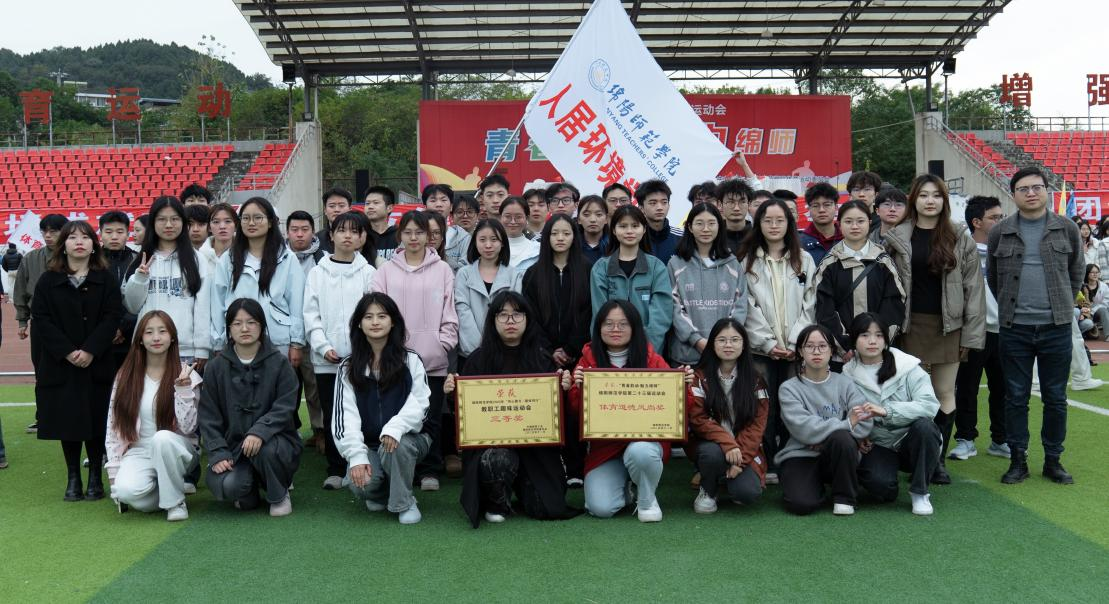 当最后一项赛事的成绩落定,运动会颁奖环节如期而至。伴随着欢快激昂的音乐,人居环境学院荣获绵阳师范学院2025年“同心聚力·趣味同行”教职工趣味运动会三等奖和“青春运动·魅力绵师”绵阳师范学院第二十三届运动会体育道德风尚奖。这不仅是对学院教师和同学们优异成绩的表彰,更是对团结协作、永不言弃的体育精神的传承与弘扬。